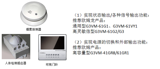 1)安防設備應用:比如煙霧探測器、人體檢測感應器、可視門鈴等,繼電器在產品上起的作用主要為產品狀態指示、控制照明電源切換等。