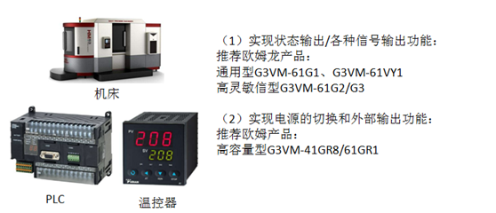 3)自動化設備產品應用:比較機床、PLC、溫控器、計時器等,繼電器在產品上起的作用主要為產品狀態指示、控制照明電源切換等。
