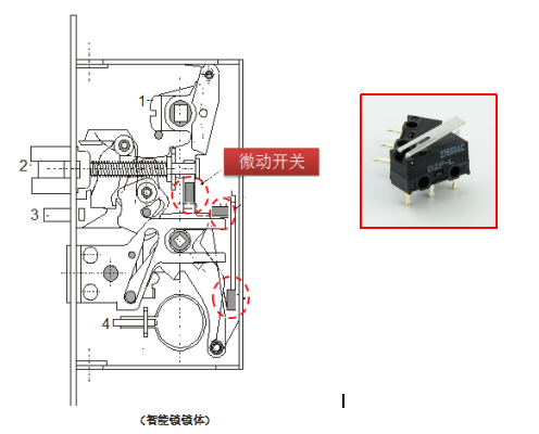 智能鎖是現在市場需求量非常大的一款智能產品,而且市場上的智能鎖種類繁多,價格不一,下面為大家介紹一下智能鎖中的一個起著靈魂作用的零件——智能鎖微動開關。微動開關在智能鎖里,做鎖舌的位置檢測,用以告知IC目前鎖的狀態——開鎖或關鎖。