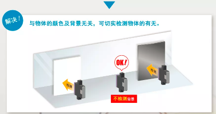 歐姆龍限定反射型傳感器的原理:接受來自檢測(cè)物體的反射光以檢測(cè)物體有無。擁有限定了投光光束和受光區(qū)域的光學(xué)系統(tǒng),僅可檢測(cè)相距傳感器一定距離(投光光束與受光區(qū)域重合的范圍)的檢測(cè)物體。