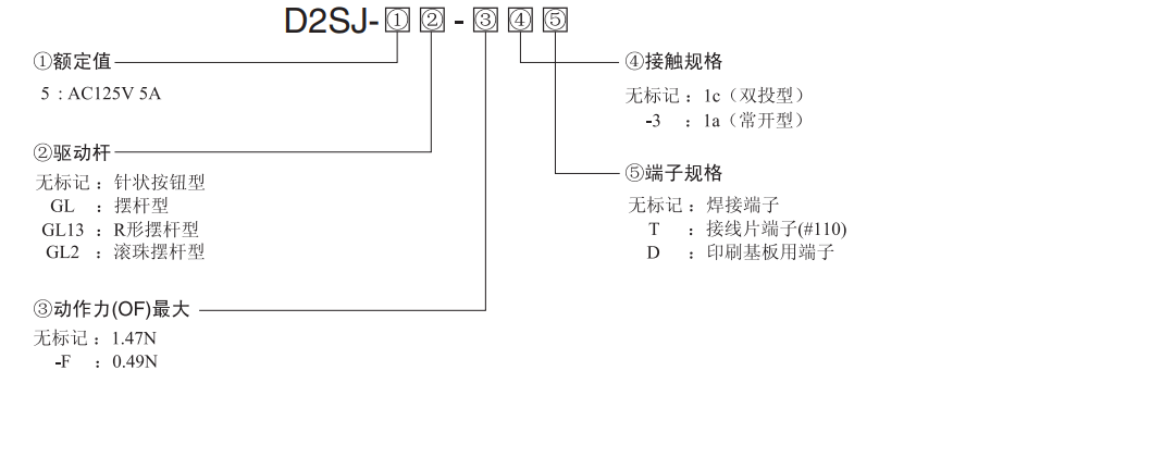 歐姆龍D2SJ微動(dòng)開(kāi)關(guān)構(gòu)造簡(jiǎn)單、使用方便,可與SS系列安裝互換,符合中國(guó)、北美和歐洲安全標(biāo)準(zhǔn),配有焊接端子、#110接線片端子及印刷基板端子等特點(diǎn)。