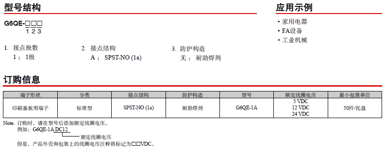 歐姆龍新品PCB功率繼電器G6QE系列