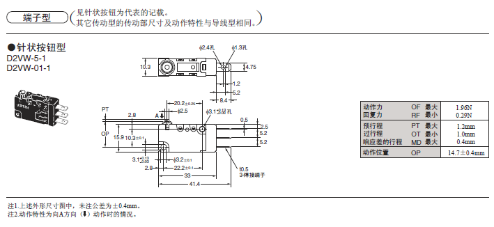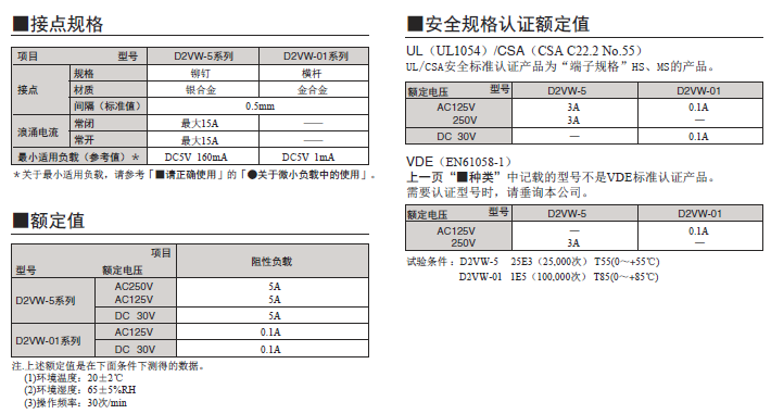 D2VW-5 密封型基本開關 密封型(符合IP67:除端子部 以外)的小型基本尺寸 采用環氧樹脂來確保穩定的密封性??梢栽跁芩蚨鄩m埃的地方使用。 內部結構采用廣受好評的V系列的結構,實現高精度和長壽命。安裝也和V系列相同。 可在汽車、農業機械、大型家電、辦公設備等有耐環境性要求的場合使用。