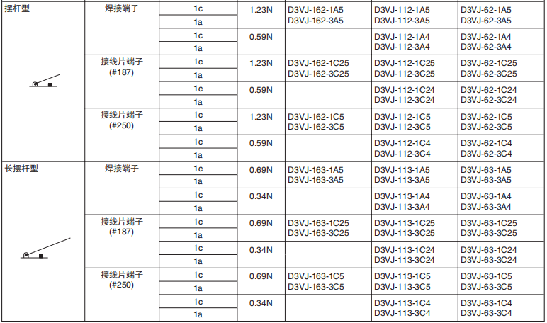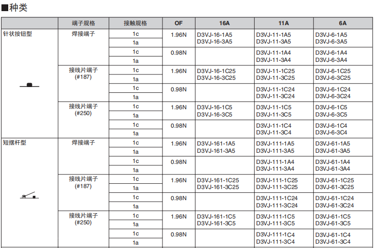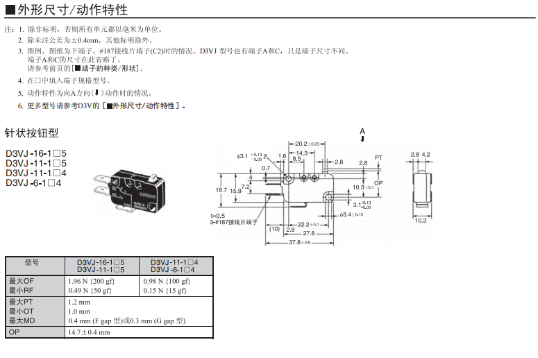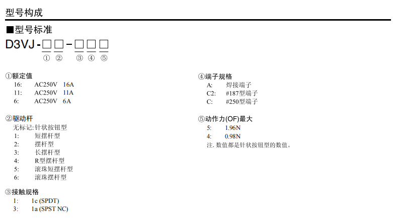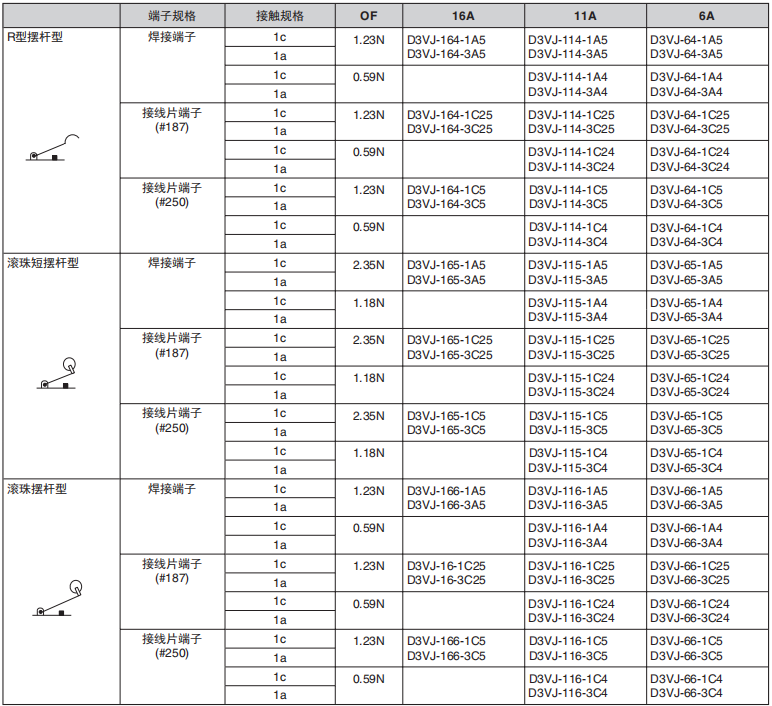 帶有外部杠桿的可靠的基本開關 外形尺寸與D3V相同。 適應未來市場要求。 備有16A、11A和6A型的產品。