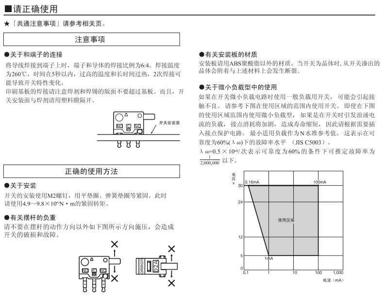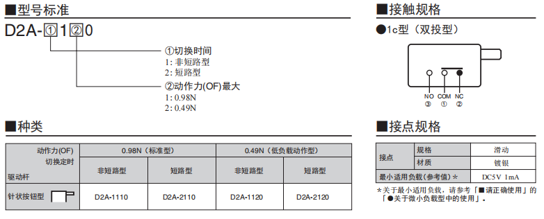 采用按鈕動作式的歐姆龍超小型開關 歐姆龍超小型(高6×寬8×深4.2mm)、輕量(約0.3g)、3mm的長行程。 由于是滑動方式,所以短路、非短路的切換時間可根據使用用途進行選擇。