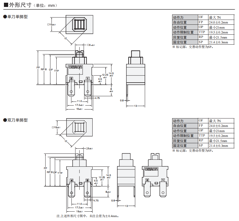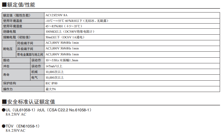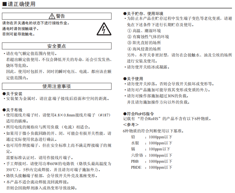 接點間隔3mm以上的小型電源開關 采用特定的速斷機構(gòu),可進行功率負載開、閉。開、閉利落、良好的操作感。 確保接點間隔3mm以上。 符合UL、cUL標準、符合EN標準。