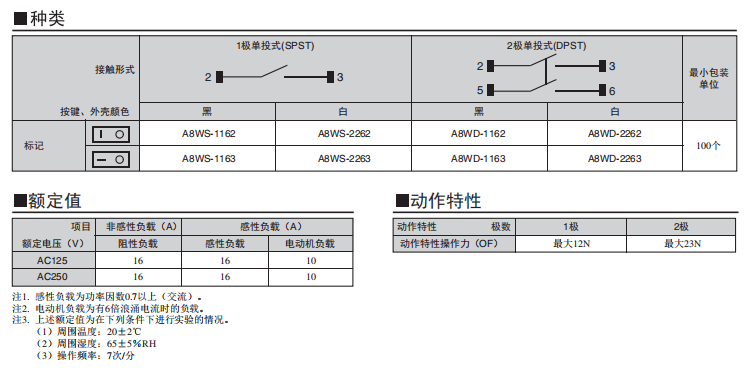 A8WD-1163船形歐姆龍開關(guān)