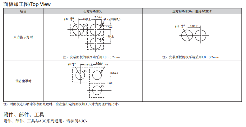 長(zhǎng)20mm、 圓型f12系列 ●與按鈕開關(guān)A3C系列是同一類型。 ●高亮度的均一表面發(fā)光。 ●圓形便于開孔。