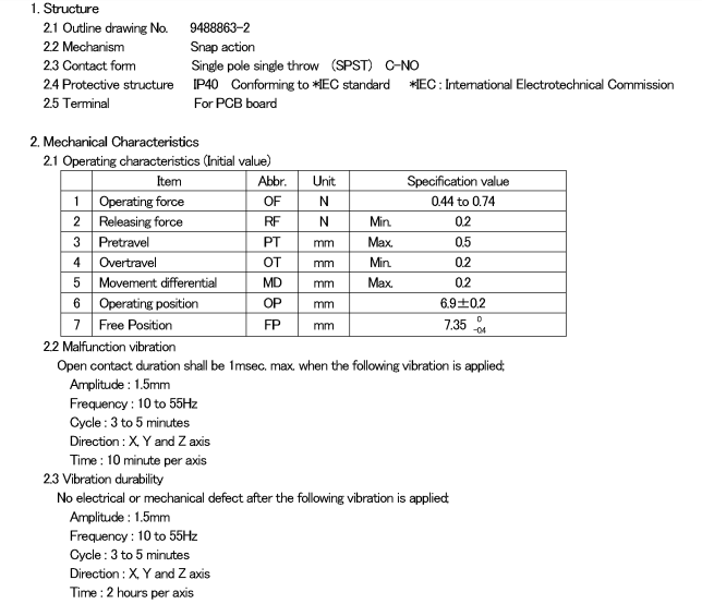 印刷基板用端子還備有獨(dú)立端子、直角端子。鼠標(biāo)開關(guān)的型號有: