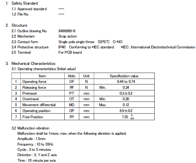 D2FC-F-7N, 克力為:60+/-15G,壽命為500萬次;