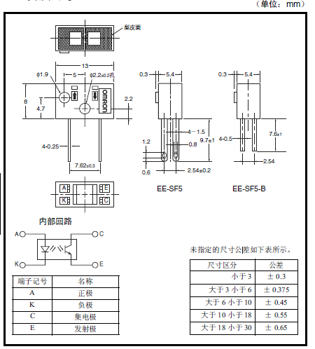 EE-SF5/EE-SF5-B微型光電歐姆龍傳感器