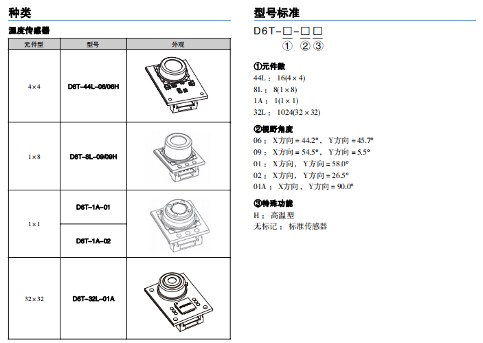 型號(hào) | D6T-44L-06/06H | D6T-8L-09/09H | D6T-1A-01 | D6T-1A-02 | D6T-32L-01A | |