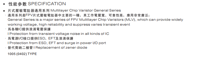 多層片式壓敏電阻器 FPV8063E150SKB